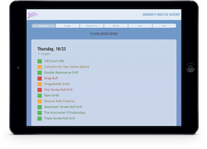 Get a birds eye view of how much and when each student practices. Work with them to build a consistent routine.